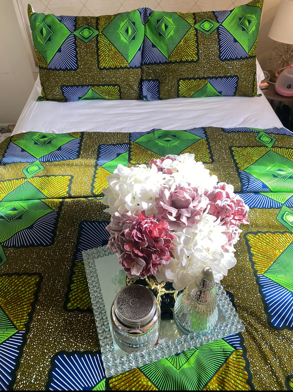 African Fabric 3-Piece Duvet Set -Blue Hexagon
